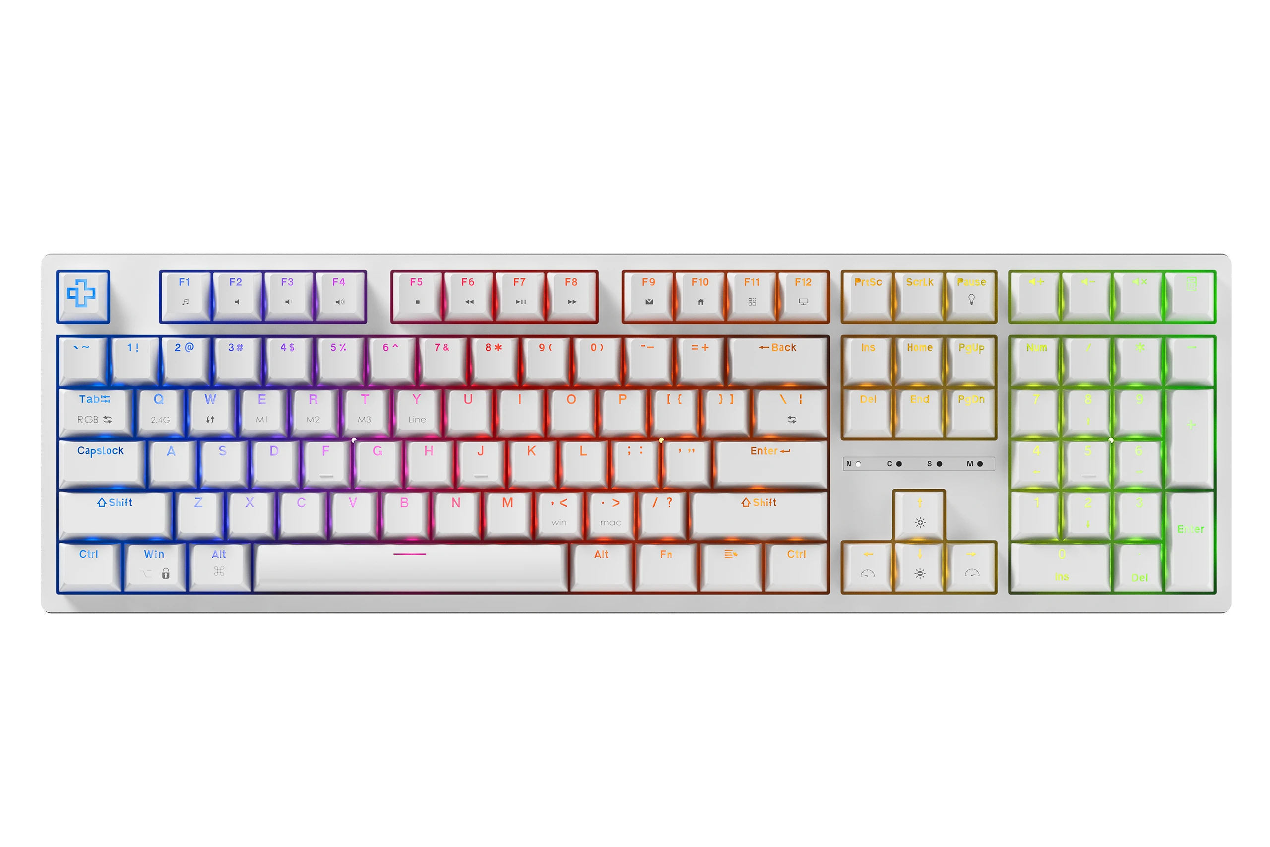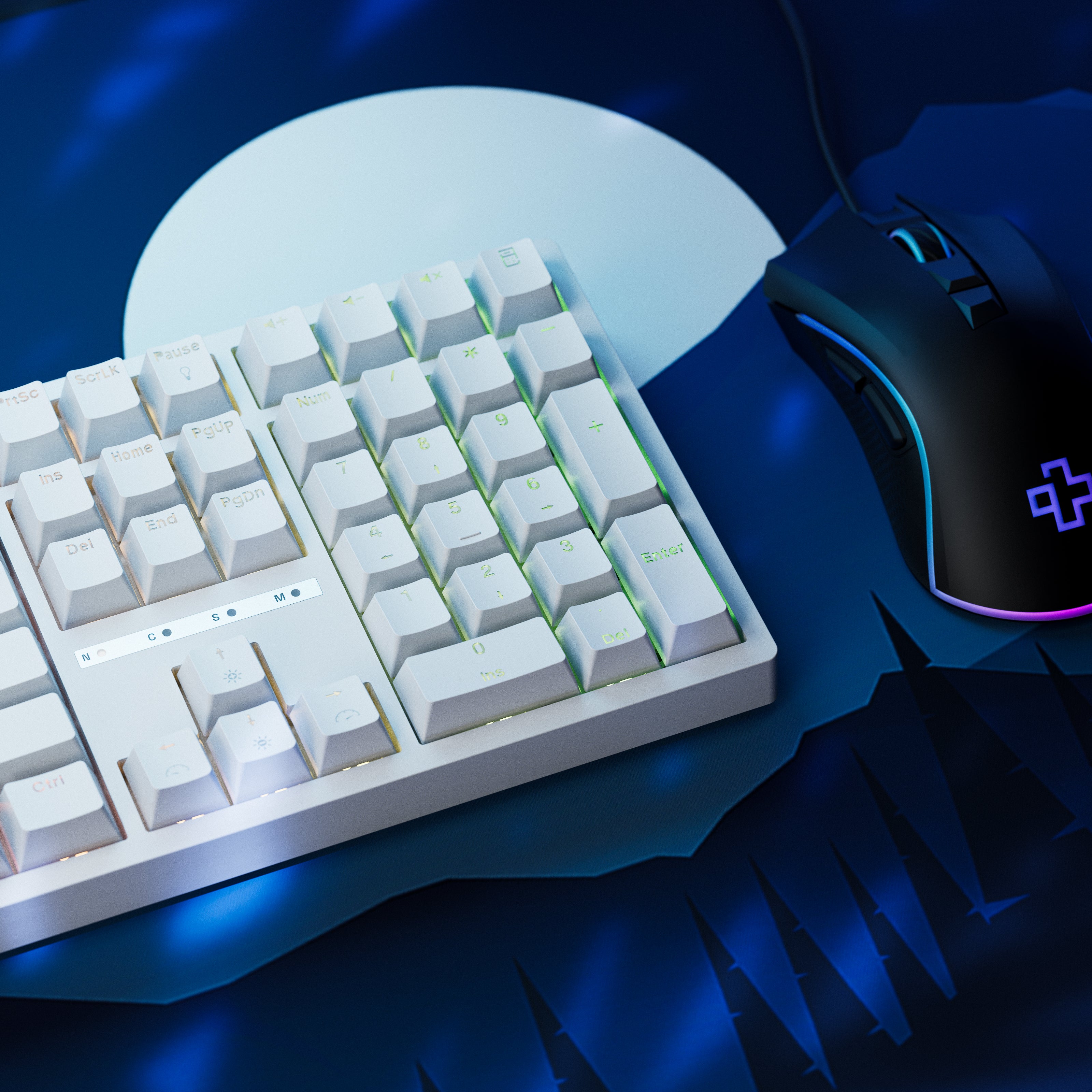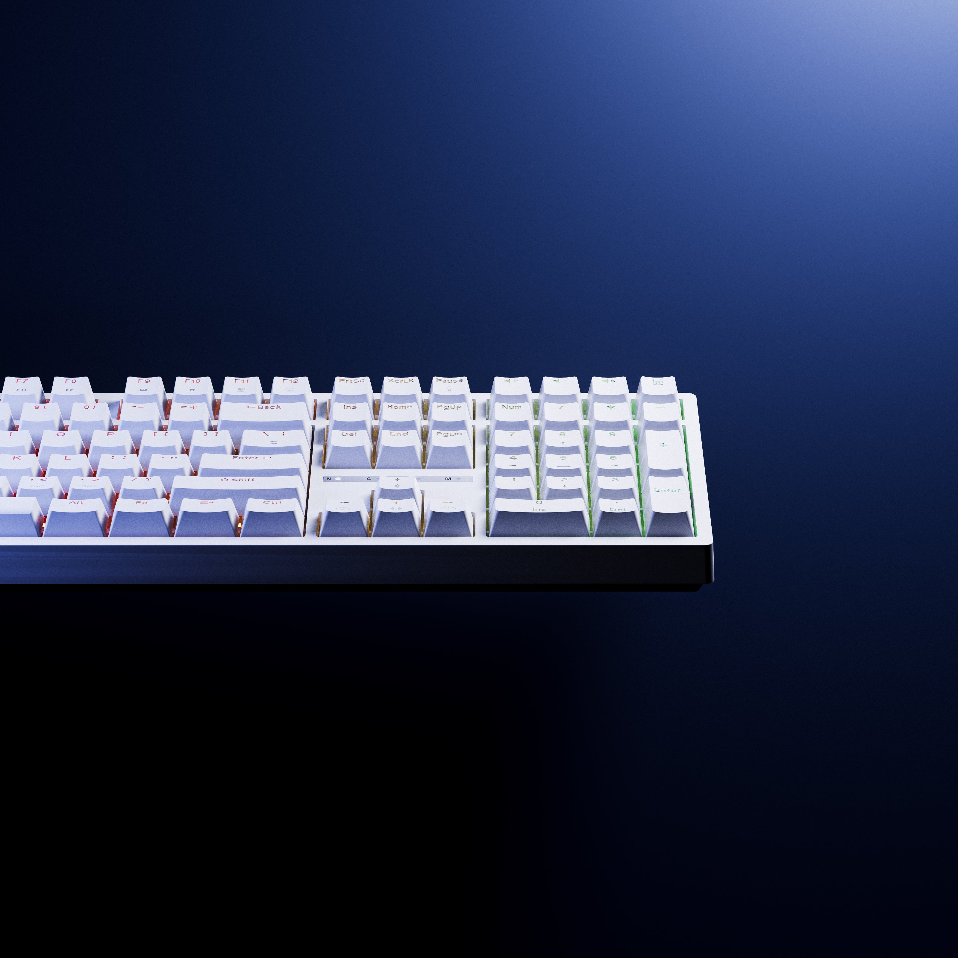 A billentyűk ABS Double Shot technológiával készültek, lehetővé téve, hogy az RGB világítás tisztán átsugározzon a feliratokon, ami ideális az éjszakai munkamunkákhoz.