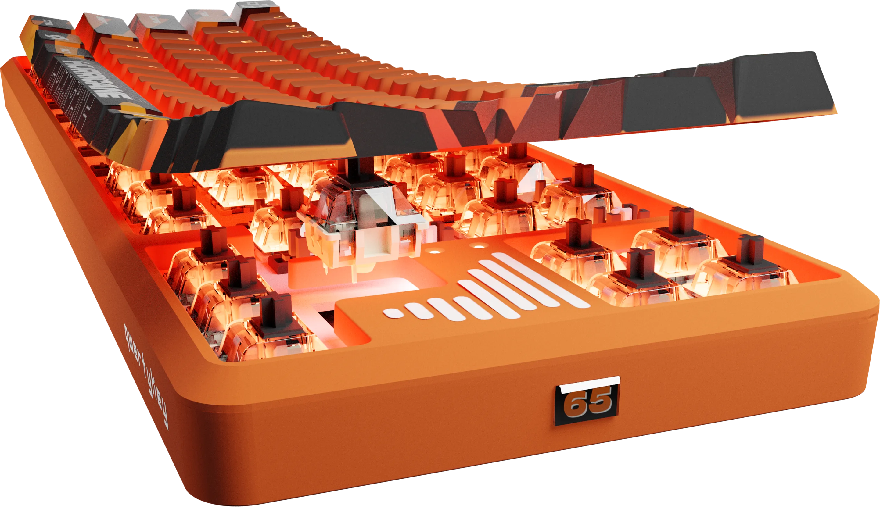 Egy 65%-os elrendezés, amely nem foglal sok helyet az asztalodon, ugyanakkor ez lehetővé teszi számára, hogy szinte bármely elérhető keycap készlettel kompatibilis legyen.