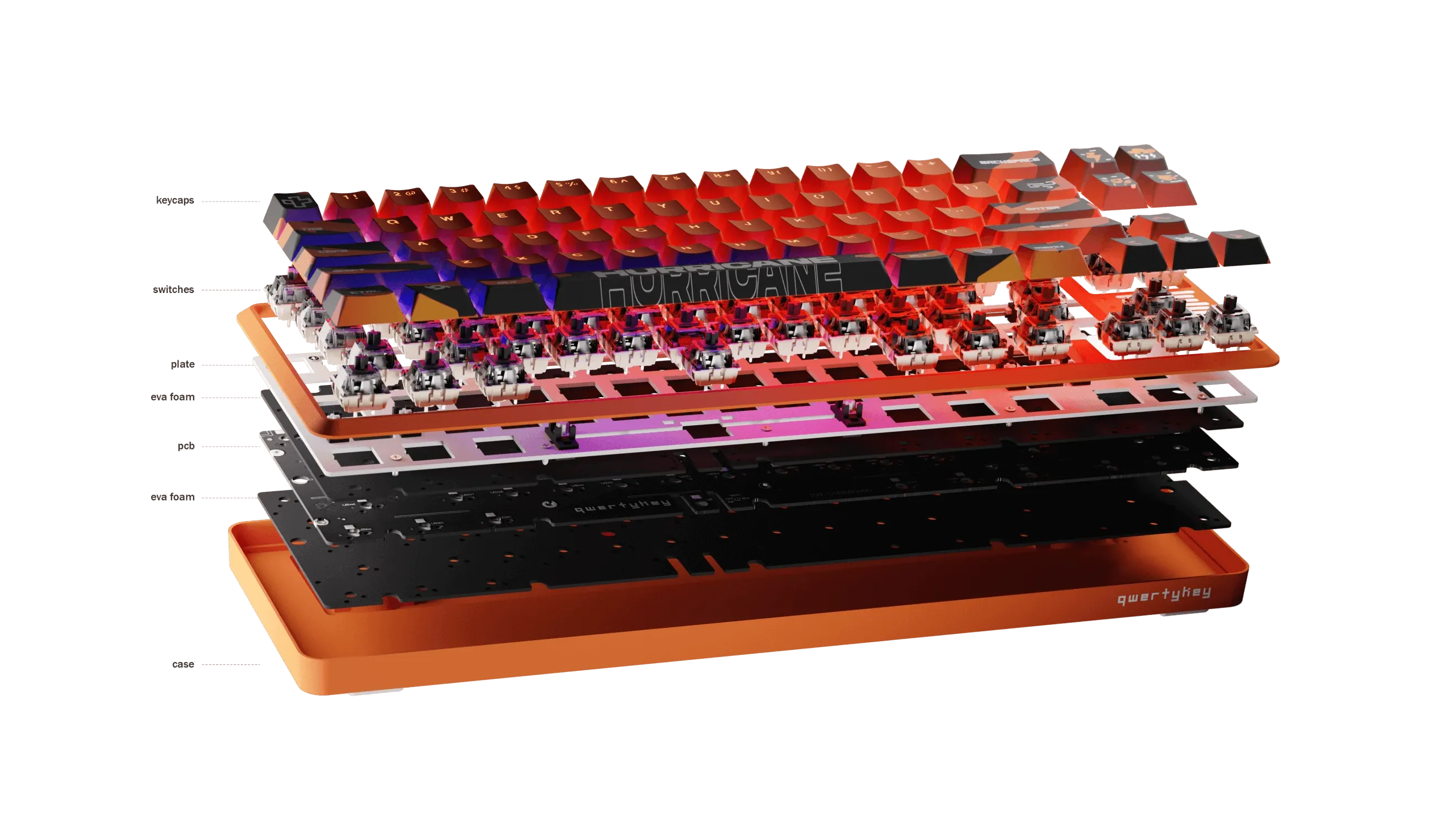 A QwertyKey65 Hurricane mechanikus gaming billentyűzet egyedi dizájnt kínál, felhasználóbarát jellemzőkkel az optimális felhasználói élmény érdekében, beleértve a következőket: