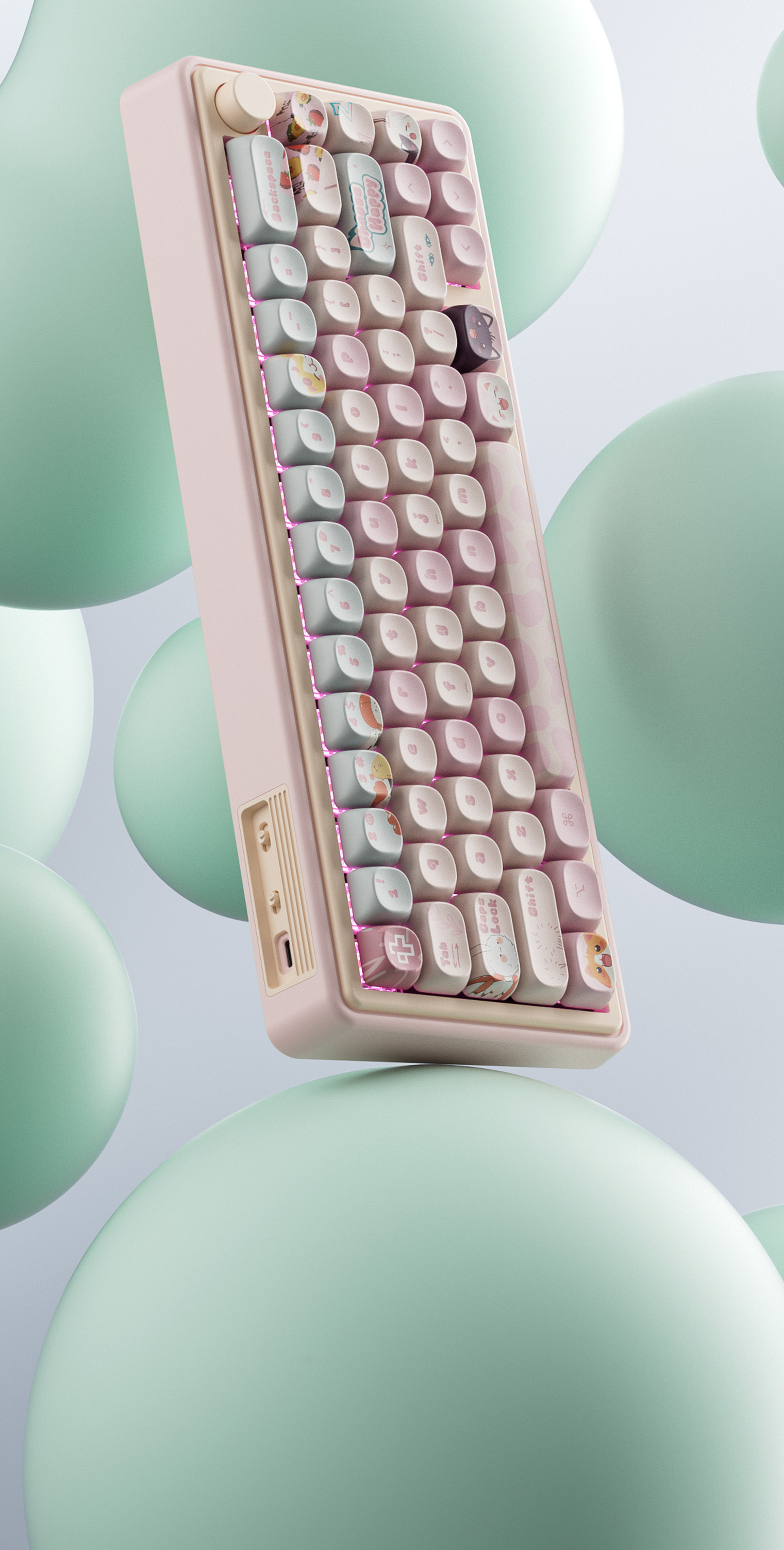 A QK65 Pro Bliss egy gondosan részletekre figyelő mechanikus billentyűzet, amely összeköti a fejlett funkcionalitást egy teljesen egyedi dizájnnal. Romániában tervezett modell új leheletet hoz a billentyűzetek világába kompakt elrendezésével, amely ideális irodai vagy játékhasználatra.