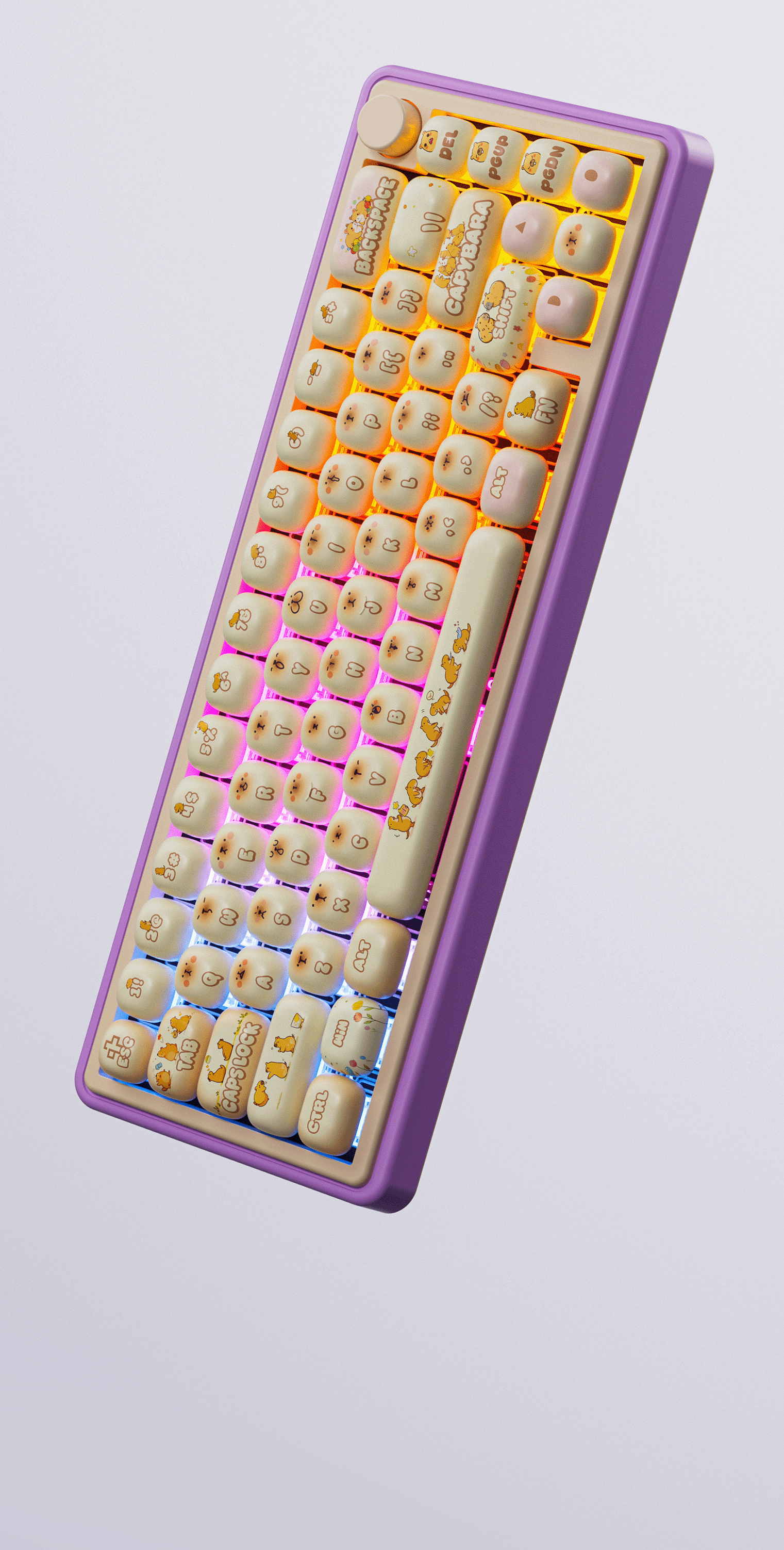 Tapasztalj meg egy új szintű irányítást a QK65 PRO Capybara multifunkciós tekerőgombjával. Intuitív használatra tervezve, lehetővé teszi a hangerő gyors beállítását, de további funkciókra is újraprogramozható. Az oldalak görgetésétől kezdve a lényeges makróparancsokig, szabadságodban áll pontosan úgy testreszabni, ahogyan szükséged van rá.