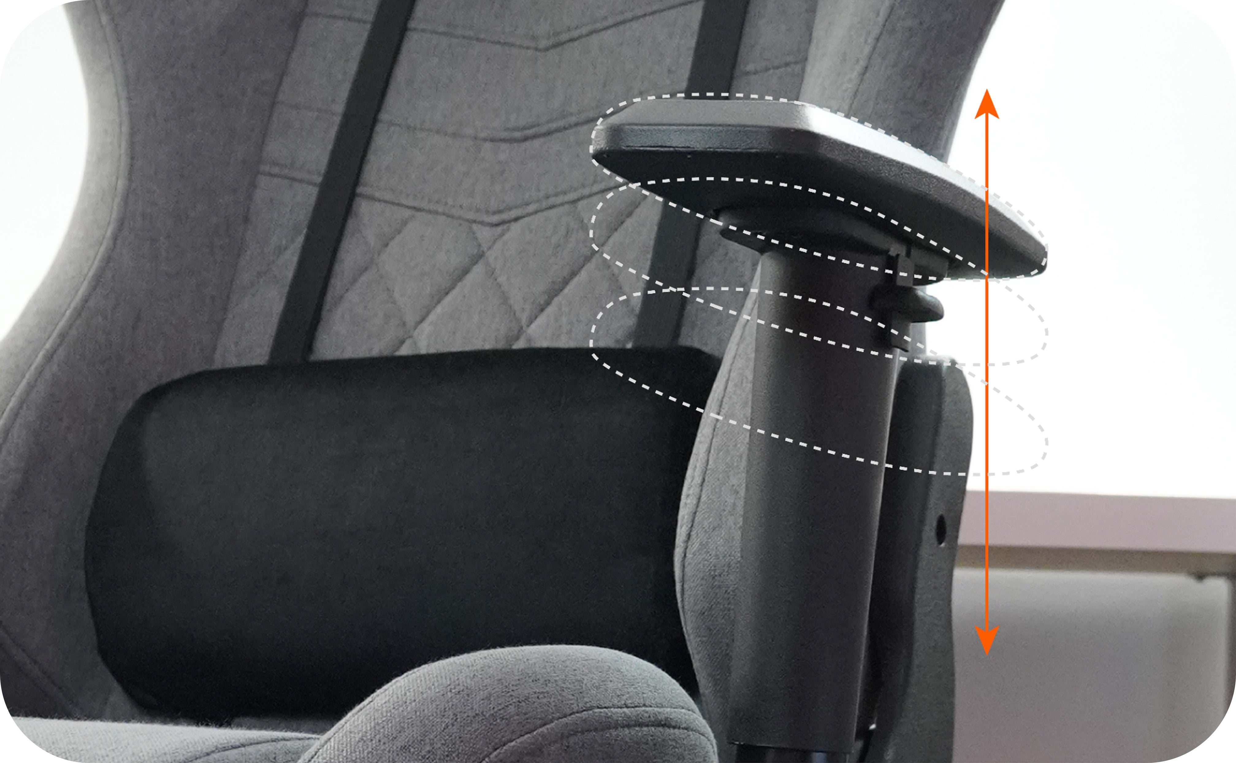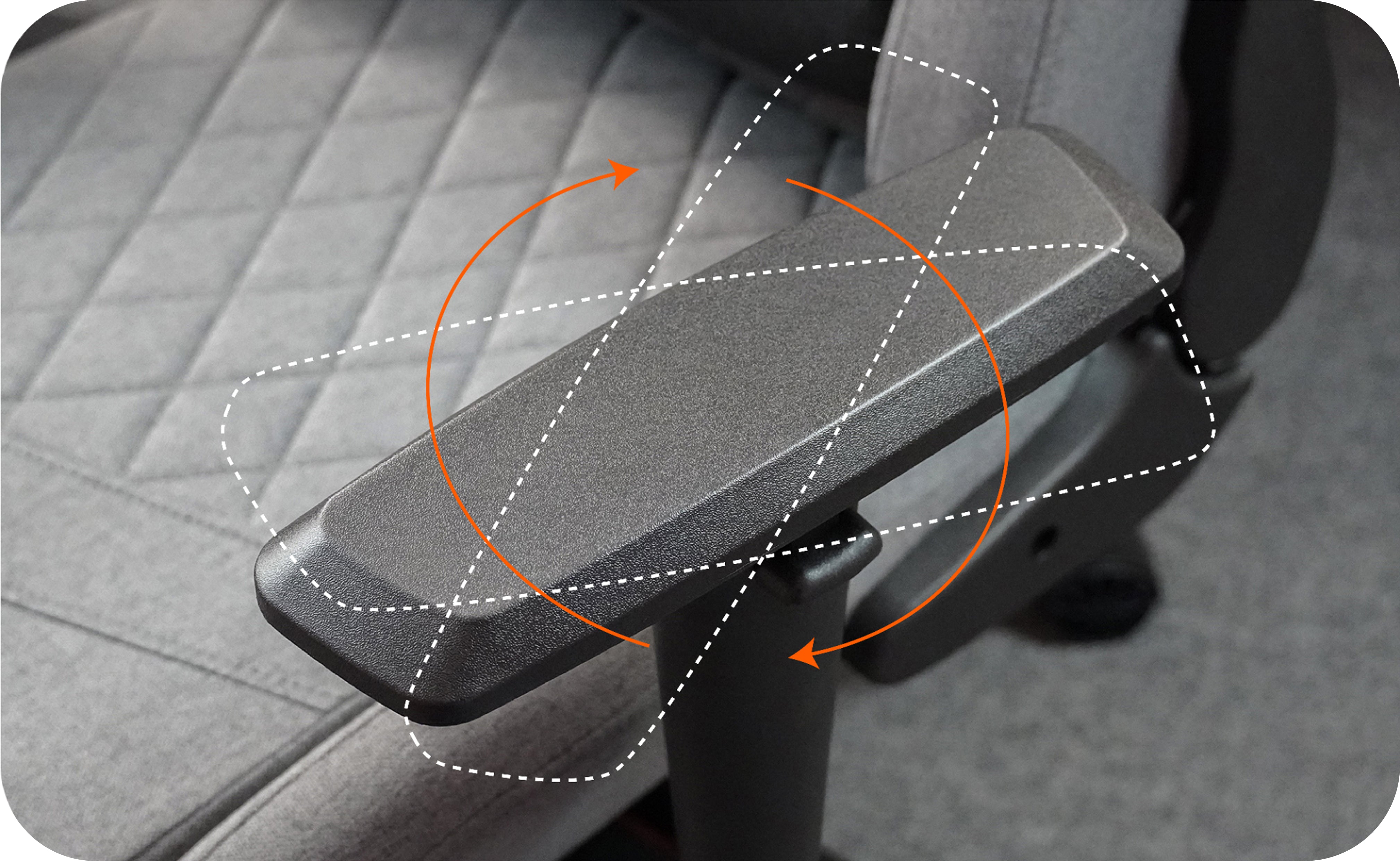 Mânerele 2D reglabile permit ajustarea pe înălțime, unghi și lateral, oferind libertatea de a găsi poziția ideală pentru brațe și umeri. Această flexibilitate contribuie la menținerea unei posturi corecte și la reducerea tensiunii în timpul sesiunilor lungi de lucru sau gaming.